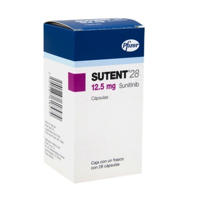 Sutent 12.5 mg, caja con 28 cápsulas