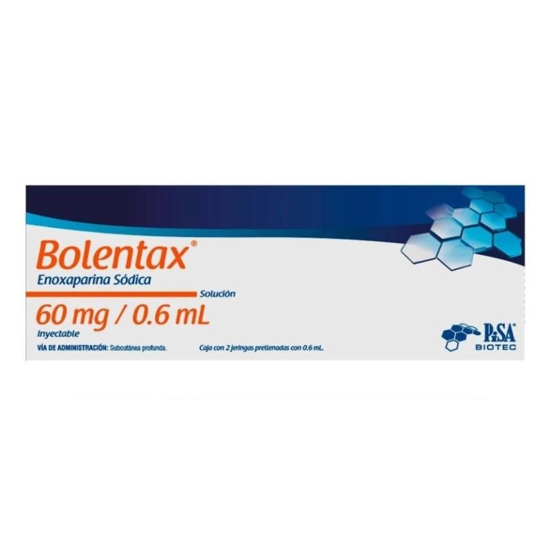 BOLENTAX 60 mg es un medicamento anticoagulante que contiene enoxaparina sódica, utilizado para la prevención y tratamiento de trastornos trombóticos como la trombosis venosa profunda (TVP) y la embolia pulmonar. Actúa inhibiendo la formación de coágulos al reducir la actividad de los factores de coagulación sanguínea. Es particularmente útil en pacientes con alto riesgo de eventos trombóticos, así como aquellos que han sido sometidos a cirugías ortopédicas o abdominales.