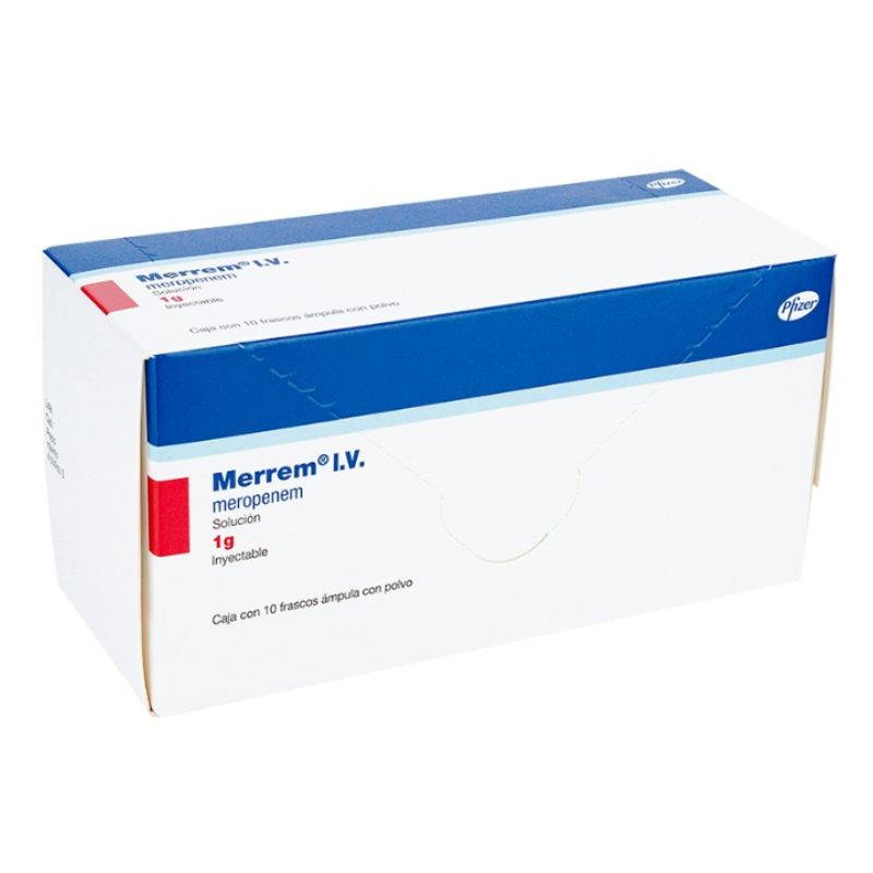 Merrem I.V. 1 g es un medicamento antibiótico perteneciente al grupo de los carbapenémicos, reconocido por su amplio espectro de acción. Está indicado para el tratamiento de infecciones graves causadas por bacterias sensibles, como neumonías, infecciones intraabdominales, urinarias, cutáneas y septicemias. Su aplicación intravenosa garantiza una acción rápida, lo que lo convierte en un recurso esencial dentro de los tratamientos hospitalarios.